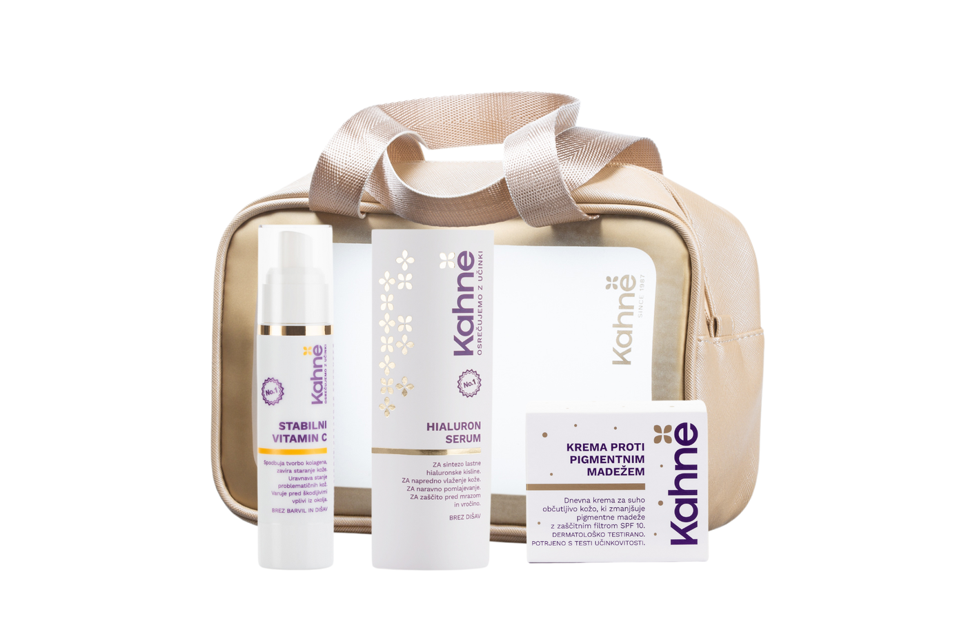 Darilni set Čudovita brezmadežnost v zlati kozmetični torbici združuje tri inovativne izdelke, ki učinkovito zmanjšujejo pigmentne madeže, izboljšujejo enakomernost tena kože ter zagotavljajo intenzivno vlaženje in celovito zaščito.