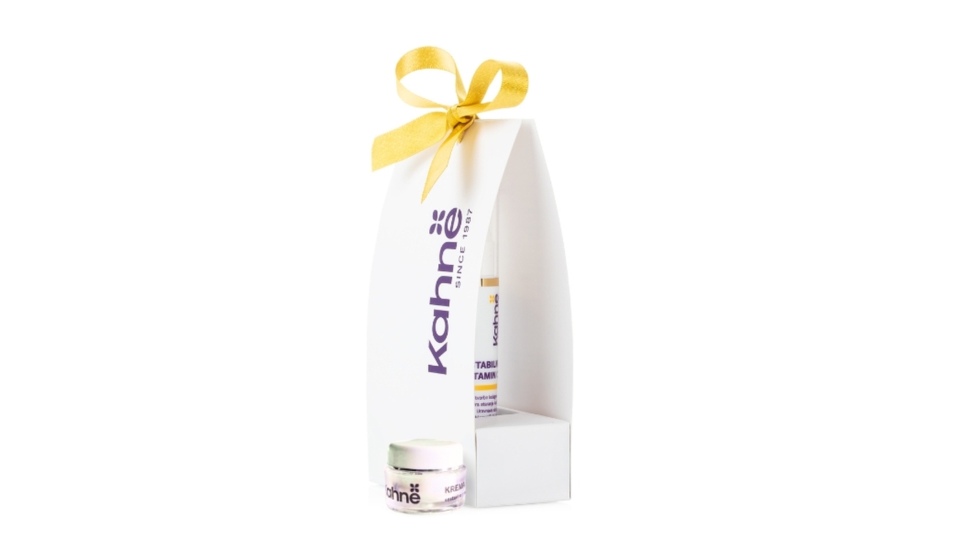 Darilno pakiranje vsebuje Stabilni vitamin C, ki je ovit v embalažo s pentljo. Izdelku je dodan 1 mini lonček kreme, ki vam ga dodamo v embalažo s pentljo: katero mini kremo želite, nam lahko napišete v opombo pri naročilu, sicer vam dodamo naključno izbrano kremo.