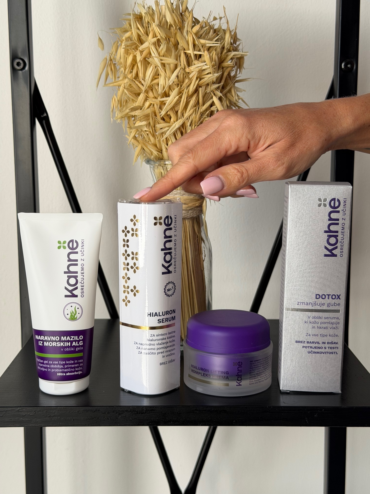 Se pa hialuron serum odlično ujema tudi z Dotoxom in Zlatim serumom, ki delujeta ciljno na gube. Več je več. Če ne preizkusite, ne boste nikoli vedeli. Nego zaključimo z ustrezno kremo Kahne glede na trenutno stanje kože in letni čas.