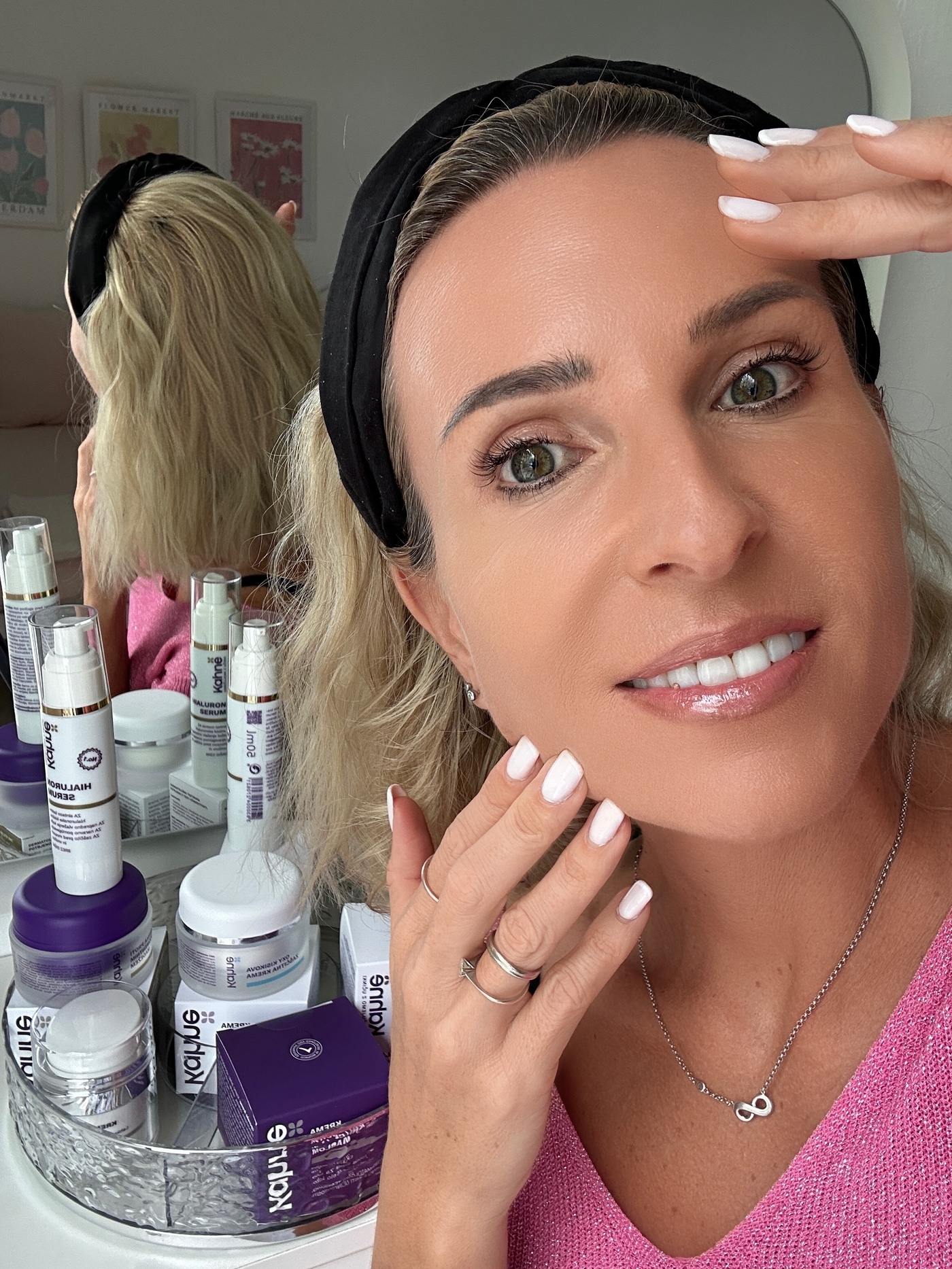 Najprej kožo dobro očistimo (Čistilno mleko ali Čistilna pena) in toniziramo (tonik ali Termalna meglica).